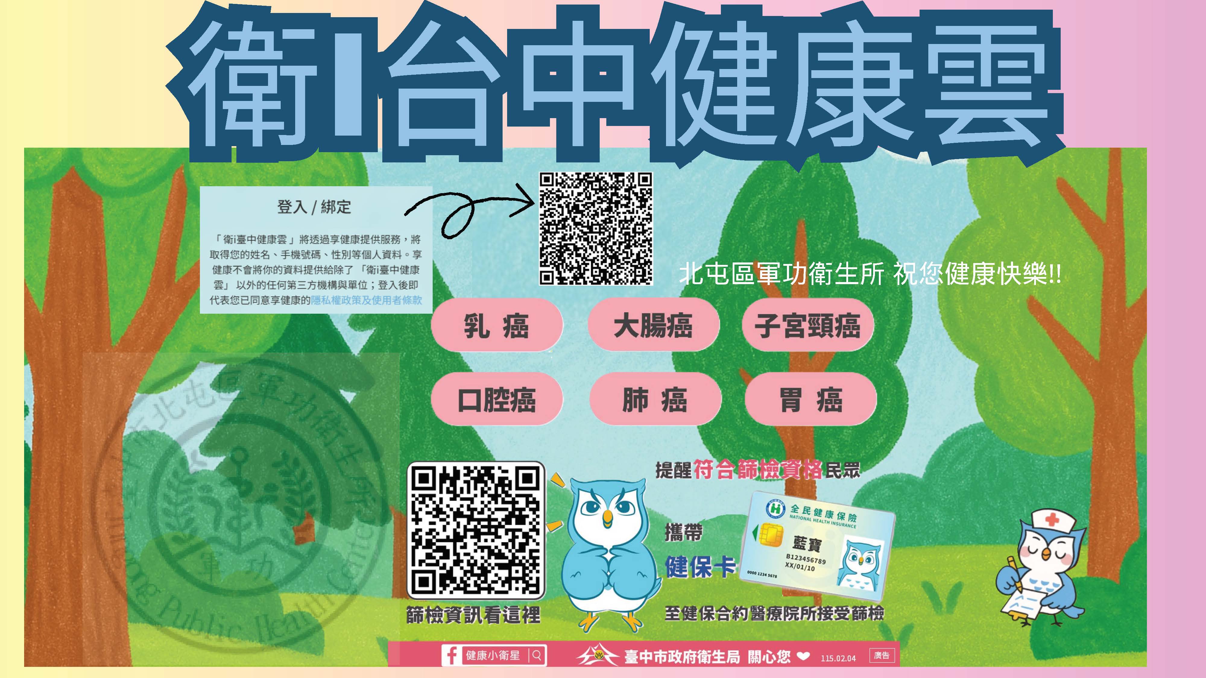 衛I台中健康雲 【衛i臺中健康雲】🖐 健康資訊AI報你知! 隨著全球數位轉型浪潮席捲各產業 城市治理邁入「智慧化」的新紀元台中市政府衛生局近年來積極導入數位科技為市民編織一張嚴密且便捷的智慧健康防護網 #缺你不可!加入健康雲,健康擁抱你!! 臺中市政府衛生局與北屯軍功衛生所 祝您健康快樂!!