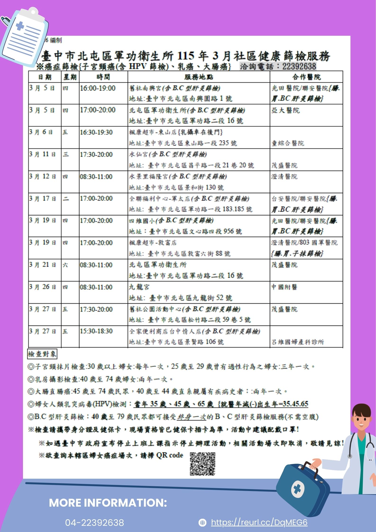 ※檢查請攜帶身分證及健保卡,現場資格皆已健保卡插卡為準,活動中建議配戴口罩!